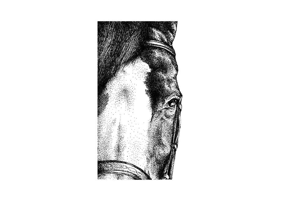 Aside from her hand-drawn ink illustrations of Dexter, my favorite equestrian piece by Swenn was inspired by Hermès. It exemplifies stippling at its best, showcasing the extent of the meticulous technique. I would LOVE to have this print in my house!